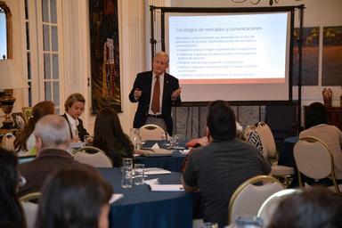 | Keywords: us embassy montevideo usembassymontevideo embajada de los estados unidos embajadadelosestadosunidos peter mcfarren kelly keiderling kellykeiderling ong's ongs ong taller indoor room La Embajadora de los Estados Unidos Kelly Keiderling fue la encargada de abrir el Taller "Innovación y Sostenibilidad en la Gestión de ONGs" dictado por el especialista Peter McFarren. McFarren es un escritor, periodista, fotógrafo y emprendedor social con una larga trayectoria en ONGs. Entre sus logros se encuentra la Fundación Cultural Quipus en Bolivia, el Museo de Egipto, Habitat for Humanity of Greater Charlottesville para nombrar algunos. Los participantes compartieron dos jornadas de intensa actividad en la residencia oficial de los Estados Uniodos. [U.S. Embassy photo: Juan Francisco Casal / Copyright info] La Embajadora de los Estados Unidos Kelly Keiderling fue la encargada de abrir el Taller "Innovación y Sostenibilidad en la Gestión de ONGs" dictado por el especialista Peter McFarren. McFarren es un escritor, periodista, fotógrafo y emprendedor social con una larga trayectoria en ONGs. Entre sus logros se encuentra la Fundación Cultural Quipus en Bolivia, el Museo de Egipto, Habitat for Humanity of Greater Charlottesville para nombrar algunos. Los participantes compartieron dos jornadas de intensa actividad en la residencia oficial de los Estados Uniodos. [U.S. Embassy photo: Juan Francisco Casal / Copyright info] |
