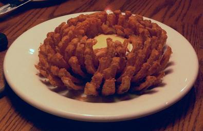 Keywords: Onion bloom.jpg Onion bloom as served in a Dallas restaurant own own photograph 2009-10 Photo Andreas Praefcke trademark Fried food Onions as food Photos by User AndreasPraefcke