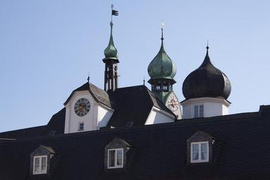 Keywords: onion domes tower onion helm roof building architecture spire clock tower dormer windows black blue back light