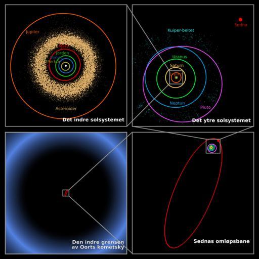 | Keywords: Oort cloud Sedna orbit-no.svg  Norsk oversettelse av File Oort cloud Sedna orbit svg Disse fire rutene viser posisjonen transneptunske objektet 90377 Sedna som befinner seg i utkanten av solsystemet Hver rute zoomer suksessivt ut for å gi en sammenheng File Oort cloud Sedna orbit svg 2010-04-30 Image courtesy of NASA / JPL-Caltech / R Hurt Original text courtesy of NASA / JPL-Caltech SVG conversion by Holek Translation to Norwegian by Cocu <small> t </small> Oort cloud Sedna orbit-sv svg<br />Oort cloud Sedna orbit french jpg Cocu Oort cloud Sedna orbit svg Oort cloud Sedna Files by User Cocu from no wikipedia PD-USGov-NASA |