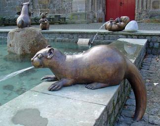 Keywords: Ootmarsum Fontein1 door Gernot en Barbera Rumpf.jpg Fontein door Gernot en Barbera Rumpf Ootmarsum 2008 own 2009-04-10 Gouwenaar Sculptures in Ootmarsum Statues of mammals in the Netherlands Statues in Dinkelland Fountains in Dinkelland Sculptures by Gernot Rumpf