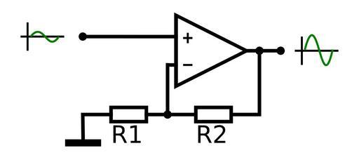 Keywords: Opamp notinverting.svg Standard circuit own 2007-01-15 Filip Dominec PD ElCompLib Inkscape Operational amplifiers