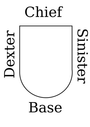 | Keywords: Opdeling1.svg en Heraldic terminology Dexter left portion of shield; Sinister right portion of shield; Chief upper area of sheild; Base lower area of shield Skjoldets opdelingsbenævnelser own User Rama Heraldic shields Illustrations of heraldic terms SVG diagrams in English Spanish heraldic shields |