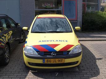 Keywords: OPEL CORSA-C Z1.2XE p2.JPG OPEL CORSA-C Z1 2XE Own 2009-08-05 11 35 18 AlfvanBeem CC-Zero Ambulances in the Netherlands Yellow ambulances Opel ambulances