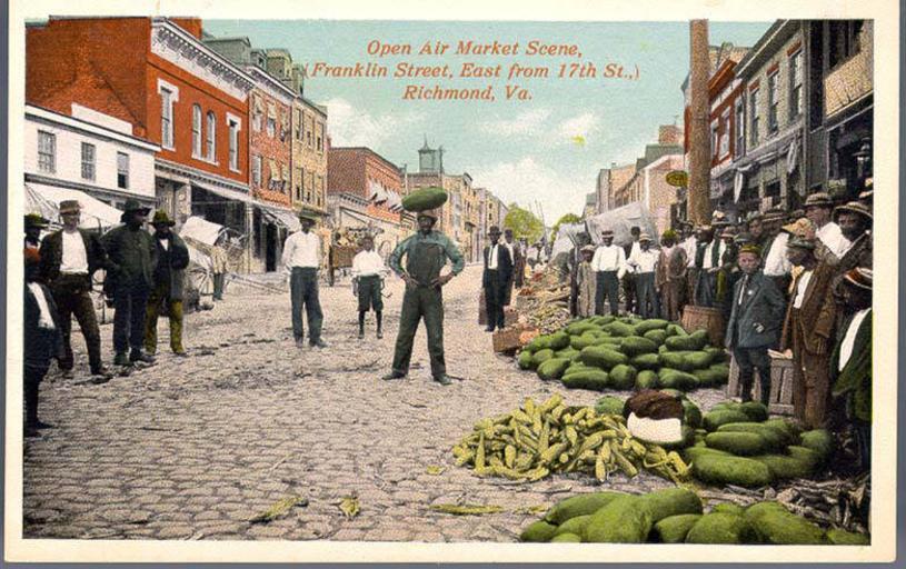 | Keywords: vcu libraries vculibraries vcu digital collections vcudigitalcollections road outdoor photo border Description: [Note: The description text is a verbatim transcription of the printed postcard text, and is a reflection of the historical time and place]. The music of a band and the 'meat' of a water-melon are irresistibly attractive to the average Virginia 'darky,' hence his predominance in this view. From the surrounding country-site the produce of truckers and hucksters is hauled to the city, usually in small two-wheel canvas covered carts, and the disposal thereof for sale, in the streets adjacent to the public markets, presents an interesting and characteristic scene. Manufacturer: Southern Bargain House, Richmond, Va. Date Postmarked: Not postmarked. Rights: This item is in the public domain. Acknowledgement of the Virginia Commonwealth University Libraries as a source is requested. Reference URL: dig.library.vcu.edu/u?/postcard,398 Collection: Rarely Seen Richmond: Early twentieth century Richmond as seen through vintage postcards Description: [Note: The description text is a verbatim transcription of the printed postcard text, and is a reflection of the historical time and place]. The music of a band and the 'meat' of a water-melon are irresistibly attractive to the average Virginia 'darky,' hence his predominance in this view. From the surrounding country-site the produce of truckers and hucksters is hauled to the city, usually in small two-wheel canvas covered carts, and the disposal thereof for sale, in the streets adjacent to the public markets, presents an interesting and characteristic scene. Manufacturer: Southern Bargain House, Richmond, Va. Date Postmarked: Not postmarked. Rights: This item is in the public domain. Acknowledgement of the Virginia Commonwealth University Libraries as a source is requested. Reference URL: dig.library.vcu.edu/u?/postcard,398 Collection: Rarely Seen Richmond: Early twentieth century Richmond as seen through vintage postcards |