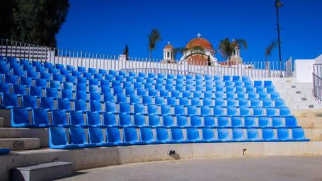 Keywords: open theater amphitheater seats empty blue liopetri cyprus