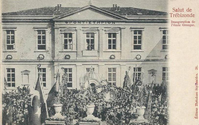 | Keywords: Opening of Greek school in Trebizond.jpg en Opening of the new building for the Greek highschool in Trabzon Turkey 2014-06-08 00 17 04 http //www delcampe net/page/item/id 186379254 var 92940-cpa-TURQUIE-TREBIZONE-salut-voir-affranchissement language E html Theodore Stylianidis PD-Art Uploaded with UploadWizard Postcards of Trabzon |