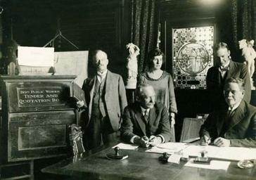 | Keywords: archives state records nsw staterecordsnsw newsouthwales blackandwhite sydney harbour bridge sydneyharbourbridge people bradfield women fashion clothing black and white Title: Opening of Tenders From left to right:-Seated: Mr. T. B. Cooper (Under-Secretary for Works), Mr. R. T. Ball (Minister for Works and Railways). Standing: Mr. J. J. C. Bradfield (Engineer-ln-Chief and Designer of the Bridge), Miss Kathleen Butler (confidential secretary to Mr. Bradfield). Mr. Swift (private secretary to the Minister for Works). Dated: 16/01/1924 Digital ID: 12685_a007_a00704_8722000064r Rights: www.records.nsw.gov.au/about-us/rights-and-permissions We'd love to hear from you if you use our photos/documents. Many other photos in our collection are available to view and browse on our website using Photo Investigator. Title: Opening of Tenders From left to right:-Seated: Mr. T. B. Cooper (Under-Secretary for Works), Mr. R. T. Ball (Minister for Works and Railways). Standing: Mr. J. J. C. Bradfield (Engineer-ln-Chief and Designer of the Bridge), Miss Kathleen Butler (confidential secretary to Mr. Bradfield). Mr. Swift (private secretary to the Minister for Works). Dated: 16/01/1924 Digital ID: 12685_a007_a00704_8722000064r Rights: www.records.nsw.gov.au/about-us/rights-and-permissions We'd love to hear from you if you use our photos/documents. Many other photos in our collection are available to view and browse on our website using Photo Investigator. |