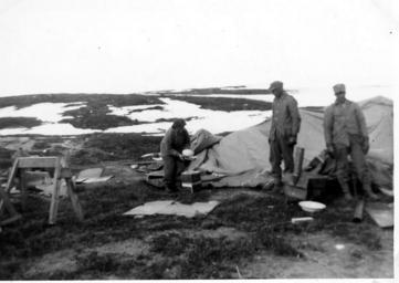Keywords: andre verdenskrig andreverdenskrig frigjøring vårslipp 2015 vårslipp2015 kautokeino / guovdageainnu kautokeinoguovdageainnu finnmark norge blackandwhite monochrome outdoor black and white Original bildetekst: En morgen var operasjonsteltet blåst ned. Så var det å samle alt og flytte det til en lunere plass. Fotografiet kommer fra et album gitt til Riksarkivet av sykepleier Marie Lysnes. Våren 1945 deltok hun i opprettelsen av et feltsykehus i Finnmark. Lysnes dokumenterte oppholdet i Finnmark gjennom tekst og bilder. Albumet er en del av privatarkivet etter Marie Lysnes. Arkivreferanse: PA-0873: Lysnes, Marie, Riksarkivet. Original bildetekst: En morgen var operasjonsteltet blåst ned. Så var det å samle alt og flytte det til en lunere plass. Fotografiet kommer fra et album gitt til Riksarkivet av sykepleier Marie Lysnes. Våren 1945 deltok hun i opprettelsen av et feltsykehus i Finnmark. Lysnes dokumenterte oppholdet i Finnmark gjennom tekst og bilder. Albumet er en del av privatarkivet etter Marie Lysnes. Arkivreferanse: PA-0873: Lysnes, Marie, Riksarkivet.