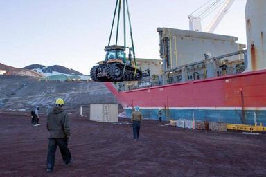 | Keywords: Operation Deep Freeze 2015 150128-N-ZZ999-003.jpg en MCMURDO STATION - Cargo Handlers from Navy Cargo Handling Battalion 1 and 13 prepare to guide a piece of civil engineering support equipment to ice pier from the Military Sea-Lift Command chartered container ship MV Ocean Giant during a resupply mission in support of Operation Deep Freeze 2015 ODF is an annual U S Pacific Air Forces-led joint interagency mission to provide logistical and transportation support to the National Science Foundation and the U S Antarctic Program Joint Task Force-Support Forces Antarctica coordinates strategic inter-theater airlift tactical deep field support aeromedical evacuation support search and rescue response sealift seaport access bulk fuel supply port cargo handling and transportation requirements for USAP 2015-01-28 January 28 2015 https //www dvidshub net/image/1838110 150128-N-ZZ999-003 2015-03-26 00 03 MCMURDO STATION AQ PD-USGov-Military-Navy Operation Deep Freeze Images from DoD uploaded by Fæ |