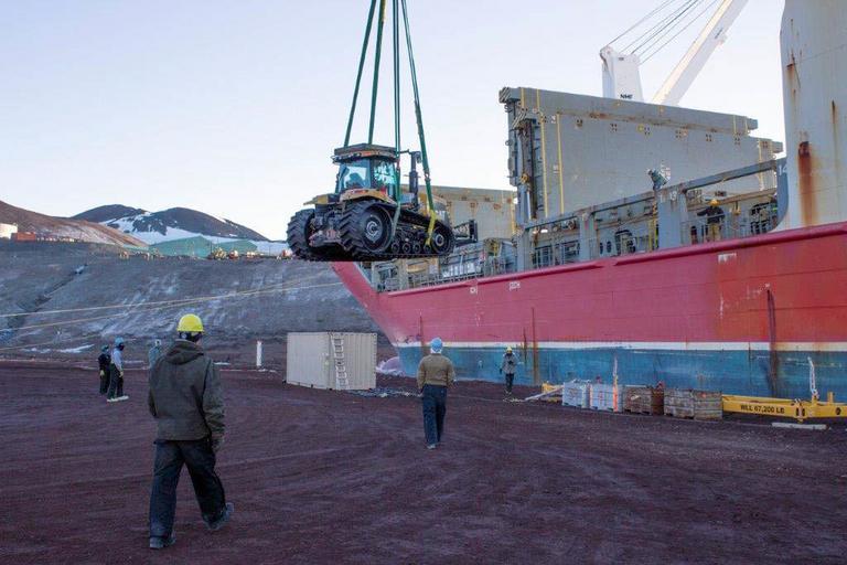 Keywords: Operation Deep Freeze 2015 150128-N-ZZ999-003.jpg en MCMURDO STATION - Cargo Handlers from Navy Cargo Handling Battalion 1 and 13 prepare to guide a piece of civil engineering support equipment to ice pier from the Military Sea-Lift Command chartered container ship MV Ocean Giant during a resupply mission in support of Operation Deep Freeze 2015 ODF is an annual U S Pacific Air Forces-led joint interagency mission to provide logistical and transportation support to the National Science Foundation and the U S Antarctic Program Joint Task Force-Support Forces Antarctica coordinates strategic inter-theater airlift tactical deep field support aeromedical evacuation support search and rescue response sealift seaport access bulk fuel supply port cargo handling and transportation requirements for USAP 2015-01-28 January 28 2015 https //www dvidshub net/image/1838110 150128-N-ZZ999-003 2015-03-26 00 03 MCMURDO STATION AQ PD-USGov-Military-Navy Operation Deep Freeze Images from DoD uploaded by Fæ |