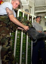 | Keywords: OPERATION IRAQI FREEDOM DVIDS1073429.jpg en NORTH ARABIAN GULF March 24 2003 --Boatswain Mate 3rd Class John M Mayer 20 of Long Branch Ca puts on Mission Oriented Protective Posture MOPP gear during a chemical attack drill onboard the U S Coast Guard Cutter Boutwell Coast Guard personnel have their gas masks with them 24-hours a day while on patrol in the Gulf USCG photo by PA1 Tom Sperduto 2003-03-24 Petty Officer 1st Class Thomas Sperduto https //www dvidshub net/image/1073429 1073429 2013-12-11 16 06 NORTH ARABIAN GULF USCENTCOM AT SEA PD-USGov Gas masks Images from DoD uploaded by Fæ |