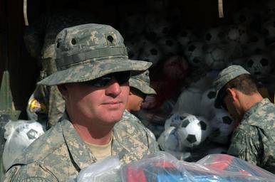 | Keywords: Operation Soccer Craze DVIDS302760.jpg en U S Army Spc Jimmie Thompson from Columbia S C assigned to Alpha Battery 2nd Battalion 3rd Field Artillery Regiment 1st Brigade 1st Armored Division helps offload a trailer of soccer equipment and uniforms to give to Iraqi children in Dibbis Iraq July 11 2010 The soccer balls and uniforms were provided by friends and family supporting U S soldiers and their humanitarian efforts in Iraq 2010-07-11 Petty Officer 1st Class David Hites https //www dvidshub net/image/302760 100711-N-+++++-001 2010-07-25 01 42 DIBBIS IQ PD-USGov-Military-Navy 1st Armored Division United States Images from DoD uploaded by Fæ |