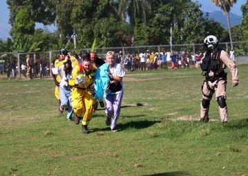 | Keywords: Operation Unified Response DVIDS243528.jpg en Petty Officer 2nd Class Gregory Renacs air crewman from Dayton Ohio waves a woman carrying a Haitian infant and Polish medical personnel toward an SH-60B helicopter from the Grandmasters of Helicopter Anti-Submarine Squadron Light 46 during a medical evacuation HSL-46 is embarked aboard the guided-missile cruiser USS Normandy providing key airlift support to assist earthquake affected areas of Haiti as part of Operation Unified Response a joint operation providing military support capabilities to civil authorities to help stabilize and improve the situation in Haiti following a 7 0 magnitude earthquake caused severe damage near Port-au-Prince on Jan 12 2010-01-21 U S Navy photo Petty Officer 2nd Class Shawn Cossins https //www dvidshub net/image/243528 100121-N-+++++-001 2010-01-24 06 20 PORT-AU-PRINCE HT PD-USGov-Military-Navy Operation Unified Response Images from DoD uploaded by Fæ |