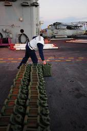 | Keywords: Operation Unified Response DVIDS243711.jpg en Cmdr Craig Hackstaff stacks jugs of water on the flight deck of the Nimitz-class aircraft carrier USS Carl Vinson The water will be delivered to earthquake victims Carl Vinson and Carrier Air Wing 17 are conducting humanitarian and disaster relief operations as part of Operation Unified Response after a 7 0 magnitude earthquake caused severe damage near Port-au-Prince Jan 12 2010-01-23 https //www dvidshub net/image/243711 100123-N-+++++-624 2010-01-25 02 36 CARIBBEAN SEA AT SEA PD-USGov-Military-Navy USS Carl Vinson CVN-70 Operation Unified Response Images from DoD uploaded by Fæ |