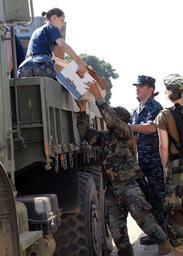 | Keywords: Operation Unified Response DVIDS250780.jpg en Sailors assigned to the amphibious dock landing ship USS Fort McHenry unload hundreds of jars of peanut butter for distribution to Haitians in Birey Haiti Fort McHenry is conducting humanitarian and disaster relief operations as part of Operation Unified Response after a 7 0 magnitude earthquake caused severe damage in and around Port-au-Prince Haiti Jan 12 2010-02-10 Photo by Petty Officer1st Class Rachael L Leslie https //www dvidshub net/image/250780 100210-N-+++++-018 2010-02-13 01 40 BIREY HT PD-USGov-Military-Navy Operation Unified Response Images from DoD uploaded by Fæ |