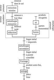 | Keywords: Operations generales metallurgie.svg en General process from ore/recycling to finished metal part fr Procédé général de fabrication d'une pièce métallique depuis l'extraction du minerai ou le recyclage d'une pièce au rebut own Cdang 2009-07-06 Metallurgy |