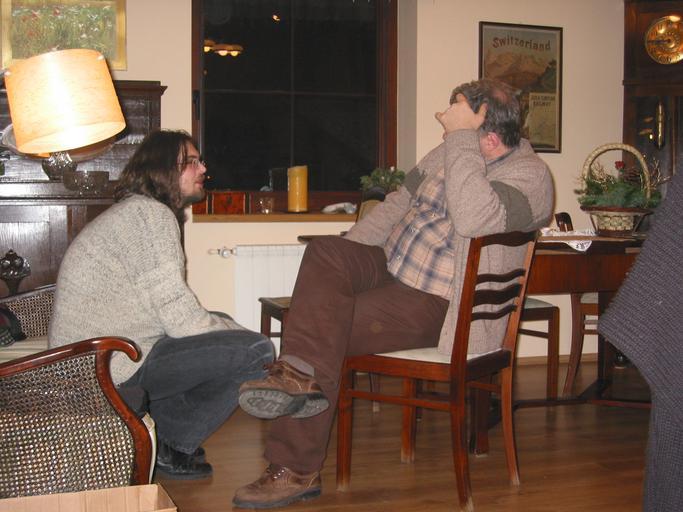 Keywords: Oplatek kuluarowe dyskusje 2.JPG Wikimedia Polska meetup December 2005 Dyskusje kuluarowe 2006-12-10 own assumed Polimerek Wikimedian meetups in Poland in 2005