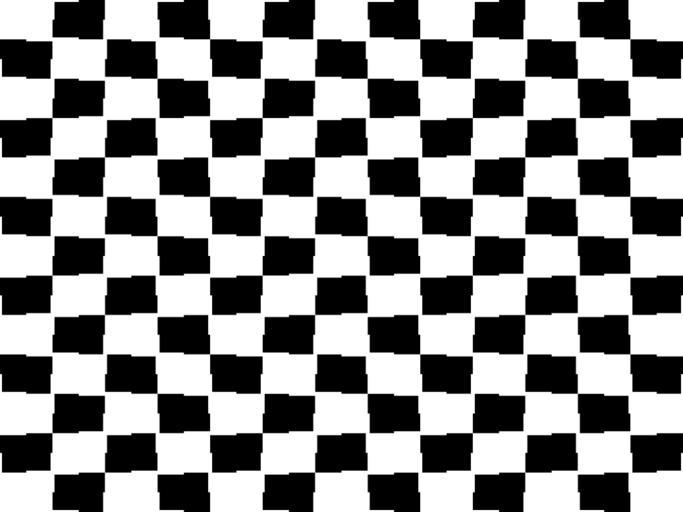 | Keywords: Optical-illusion-checkerboard-bw.svg Same basic optical illusion as in File Optical-illusion-checkerboard svg but using black and white only All lines and edges are strictly horizontal/vertical and fully parallel/perpendicular to each other but may appear otherwise Optical-illusion-checkerboard svg 2012 AnonMoos Distorting illusions |