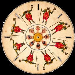 | Keywords: Optical illusion disc with a face catching a ball and a man with blackface taking a bow.gif Optical illusion disc which is spun displaying the illusion of motion of a face catching a ball in a circle at the center of the disc and a man with blackface taking a bow in a circle at the outer edge of the disc Part of McLean ™s Optical Illusions or Magic Panorama a boxed set of 12 discs Hand-colored lithograph LOC-image cph 3g08090 pnp 1833 author Published by Thomas McLean PD-retouched-user Racconish 1833 in England Phenakistoscope PD-old-100 |