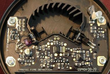 Keywords: OpticalSD.jpg en Inside view of an optical smoke detector own Xmastree 2009-03-01 Disassembled smoke detectors