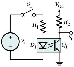 | Keywords: Optocoupler Circuit.svg optocoupler When the switch S'<sub>1</sub> is closed the diode emits light and the transistor conducts v'<sub>out</sub> thus goes low This circuit therefore acts much like a logicalNOT gate own Inductiveload 2008-11-19 Based on Optocouple circuit svg Opto-isolators |
