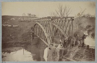 | Keywords: Orange & Alexandria Railroad Bridge over Bull Run (ca. 1863).jpg en Union Army Truss Bridge across Bull Run on the Orange Alexandria Railroad built April 1863 under the supervision of General Herman Haupt Other date circa 1863 Library of Congress http //hdl loc gov/loc pnp/ppmsca 33476 unknown photographer other versions 38 776436 -77 421606 Bull Run is a tributary of the Occoquan River It serves as a boundary between Fairfax County Prince William County and Loudon County The stream enters the river northeast of Manassas Virginia the O A RR crossed it once PD-old-70-1923 Uploaded with UploadWizard American Civil War American Civil War bridges American Civil War technology |