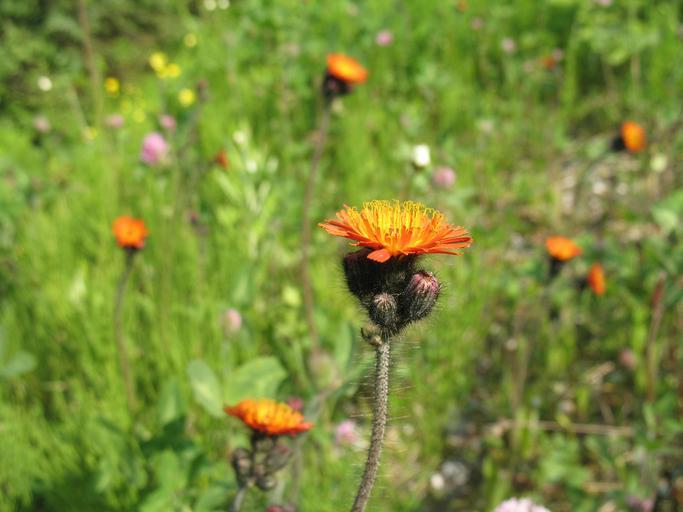 Keywords: orange hawkweed pilosella aurantiaca flowers bloom blooming nature plants outdoors spring wildflower flora fire weed mountain flower