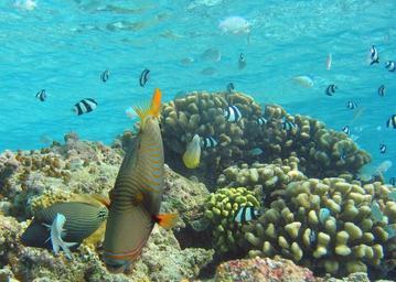 Keywords: orange lined triggerfish ocean sea coral reef swimming marine underwater saltwater colorful