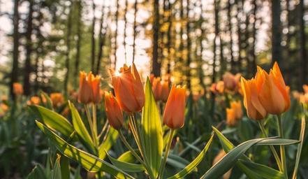 Keywords: orange tulips flowers garden nature trees forest sunset