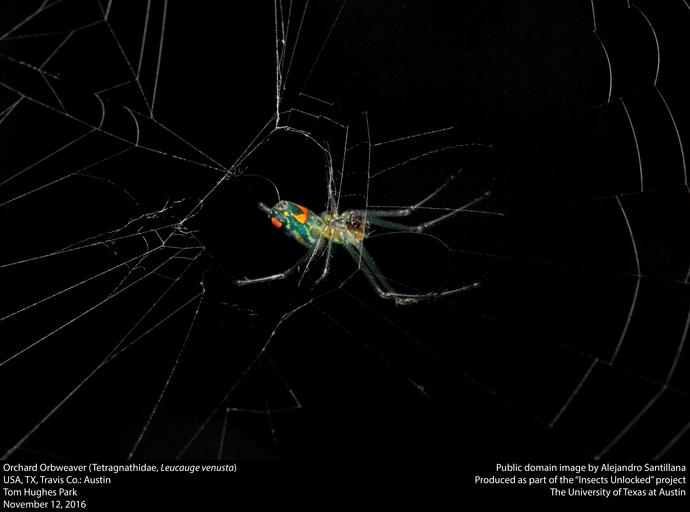 Keywords: arachnida araneae tetragnathidae leucauge leucauge venusta leucaugevenusta l. venusta lvenusta orchard orbweaver orchardorbweaver USA, TX, Travis Co.: Austin Tom Hughes Park 12-xi-2016 USA, TX, Travis Co.: Austin Tom Hughes Park 12-xi-2016