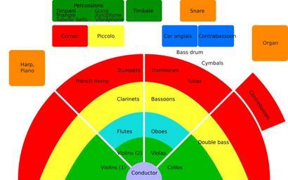 Keywords: Orchestra layout.svg en The typical positions of the musical instruments in a classical orchestra own Darkdoc 2009-01-18 Diagrams of orchestras English text