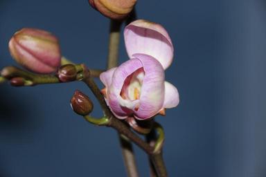 Keywords: orchid bud purple open orchid greenhouse orchidaceae blossom bloom white houseplant plant