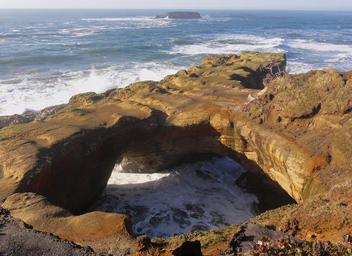 Keywords: oregon rocks rocky formation boulders scenic sea ocean water waves foam beach devil's punchbowl landmark nature outside