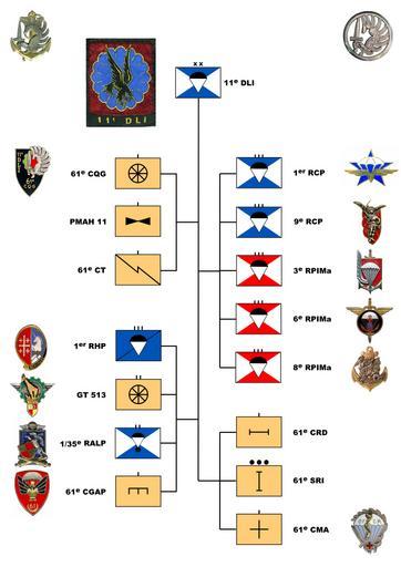 | Keywords: Organigramme 11e DLI.jpg fr Organigramme symbole Otan et insignes de la 11e division légère d'intervention française entre le 1er mai 1961 et le 30 novembre 1963 Cf revue uniformes n° 278 sept-oct 2011 page 30 2011-10-01 own BrunoLC cc-zero Uploaded with UploadWizard Military OrBat Graphics/France |
