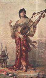 | Keywords: Orientalgirlwithharp-sichel.jpg Junge Frau mit Zupfinstrument oil on canvas 86 4 x 50 8 cm http //www iment com/maida/family/mother/vicars/nathanielsichel htm Creator Nathaniel Sichel < 1907 Nathaniel Sichel Standing women in art Orientalist portrait paintings Lyres in art Paintings of women holding musical instruments PD-old-100 |