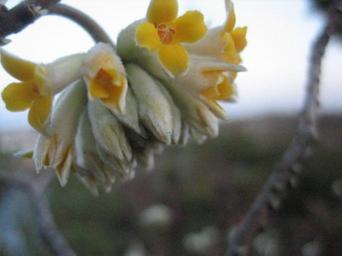 Keywords: OrientalPaperbush.JPG Oriental Paperbush flower own 20070301 libraryworm Edgeworthia chrysantha