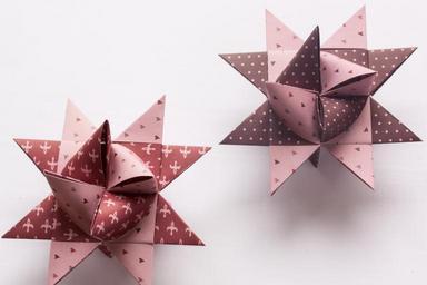 Keywords: origami art of paper folding fold 3 dimensional object star geometric bodies violet red reddish eggplant