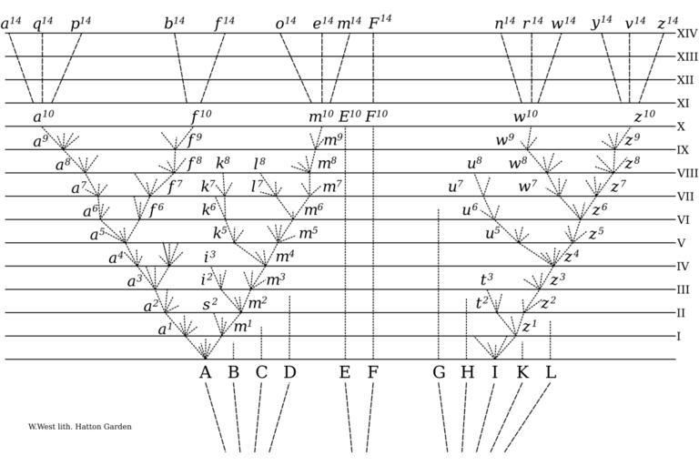 Keywords: Origin of Species.svg The only illustration in Charles Darwin's 1859 On the Origin of Species showing the divergence of species Caption Diagram of Divergence of Taxa Own work by uploader based on File On the Origin of Species diagram PNG Illustration by Charles Darwin SVG file by Inductiveload 2009-02-05 The Origin of Species Phylogenetic tree of life Tree diagrams |
