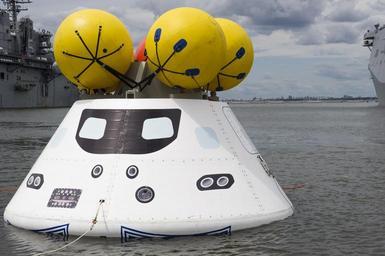 | Keywords: Orion capsule in the waters of Norfolk Naval Station 2013.JPG en An Orion capsule floats before being towed into the well deck of the U S Navy amphibious transport dock ship USS Arlington LPD-24 during an exercise as part of NASA's first Orion stationary recovery test at Naval Station Norfolk Virginia USA NASA is partnering with the U S Navy to develop procedures to recover the Orion capsule and crew after splashdown 2013-08-15 130815-N-EI510-183 Navy http //www navy mil/view_image asp id 157458 U S Navy photo by Mass Communication Specialist Seaman Scott Barnes PD-USGov-Military-Navy Orion spacecraft |