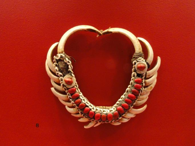 Keywords: Ornament, boar tusks, nassa shells, conus shell rings, red seeds, Papua New Guinea, 1916 - Staatlichen Museums für Völkerkunde München - DSC08320.JPG Exhibit in the Oceanic collection of the Staatlichen Museums für Völkerkunde München Maximilianstraße 42 Munich Germany Ornament made of boar tusks nassa shells conus shell rings red seeds Papua New Guinea 1916 I took this photograph 2011-05-03 03 56 03 Daderot Public domain Dauerausstellung Ozeanien des Staatlichen Museums für Völkerkunde München |