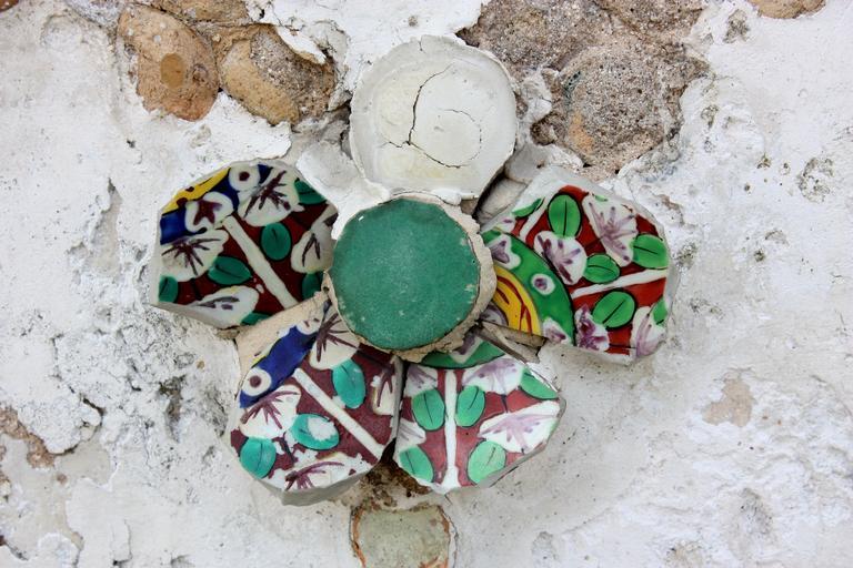 Keywords: ornament mosaic flower stone frag mortar wall craft jigsaw puzzle mixed temple thailand green