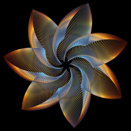 Keywords: ornamental decorative floral flower geometric abstract line art prismatic chromatic rainbow colorful shiny metallic gold wireframe