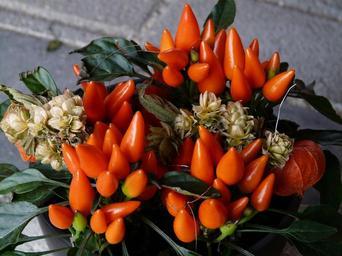 Keywords: ornamental peppers paprika pod peppers orange gaudy colorful bright capsicum chili pepperoni pepper chilli nachtschattengewächs solanaceae