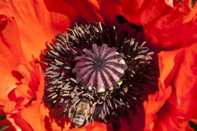 Keywords: ornamental poppies half rosette plant flower nature flora spring blossom bloom ornamental plant red stamen capsule bee