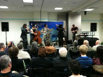 | Keywords: kalamazoo library live concert liveconcert indie folk ethnic room Equipped with an orchestral ensemble of banjo, accordion, trumpet, xylophone, shepherd harp, musical saw, pedal steel, a suitcase pump organ, cittern, guitar and dobro, double bass, foot percussion, various ukuleles and mechanical horned violins, members of Orpheum Bell brought their original "Country & Eastern" songbook of lullabies, stomps, dirt-road ballads, and gypsy suites and waltzes to Kalamazoo Public Library on Wednesday, January 12, 2011, as part of KPL's ongoing Live Music Series. Photo by Kevin King. www.kpl.gov Equipped with an orchestral ensemble of banjo, accordion, trumpet, xylophone, shepherd harp, musical saw, pedal steel, a suitcase pump organ, cittern, guitar and dobro, double bass, foot percussion, various ukuleles and mechanical horned violins, members of Orpheum Bell brought their original "Country & Eastern" songbook of lullabies, stomps, dirt-road ballads, and gypsy suites and waltzes to Kalamazoo Public Library on Wednesday, January 12, 2011, as part of KPL's ongoing Live Music Series. Photo by Kevin King. www.kpl.gov |