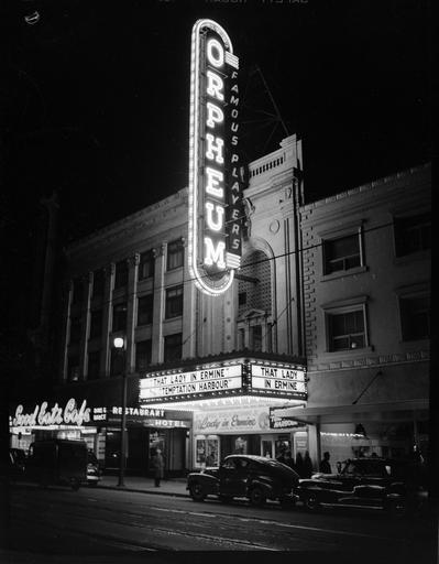 | Keywords: vancouver neon blackandwhite monochrome building architecture night city black and white PHOTO NUMBER: 80714 DESCRIPTION: Orpheum Theatre at night Granville Street, Vancouver, BC. PHOTOGRAPHER: Art Jones DATE: 1948 SUBJECTS: Theatres, Neon More information on our historical photograph collection: www.vpl.ca/historicalphotos PHOTO NUMBER: 80714 DESCRIPTION: Orpheum Theatre at night Granville Street, Vancouver, BC. PHOTOGRAPHER: Art Jones DATE: 1948 SUBJECTS: Theatres, Neon More information on our historical photograph collection: www.vpl.ca/historicalphotos |