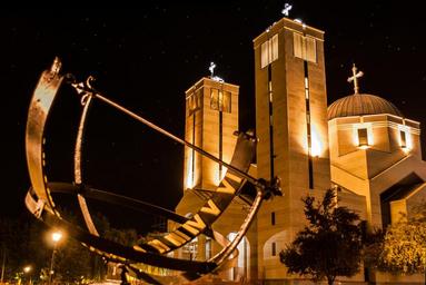 Keywords: orthodox church night church orthodox architecture city tower stars sky
