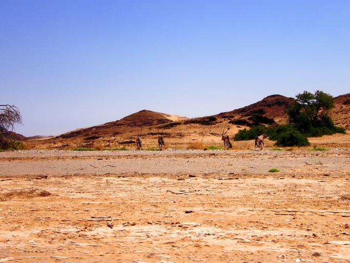 Keywords: oryx herd desert shade tree shelter heat sun namibia sand rocks