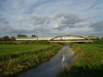 Keywords: Orz bridge tourist train.JPG Orz river in Poland on Ostrołęka “ MaÅ‚kinia route between Daniszewo and Jarnuty stations close to the latter 2012-09-08 16 46 25 own Jan PeÅ¡ula cc-zero Uploaded with UploadWizard Orz Railway line 34 Poland